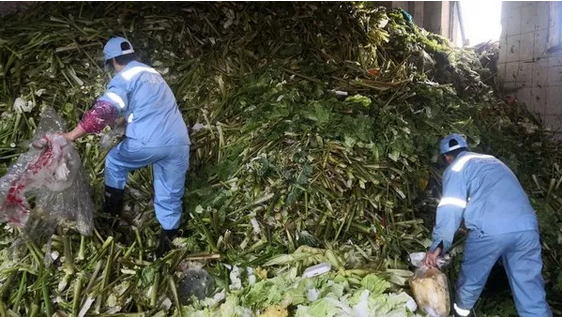 江楊北路上的江楊農(nóng)產(chǎn)品市場人流如織,平均每天在這里成交的蔬菜就超過1800噸,繁忙的交易、物流衍生了大量的生活垃圾,其中,僅果皮菜葉等濕垃圾和過期食品、不合格食品等不可食用廢棄物的日均產(chǎn)生量就在30噸左右。